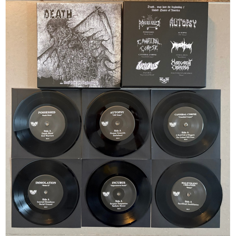 Here comes another 7" boxset glorifying the old days when Death Metal crawled from the deep abyss to show the world what Extreme Music can sound like. Housed in a rigid box with another exclusive artwork, the second part pays tribute to another important scene: the United States. This limited and hand-numbered box comes with another exclusive artwork and will contain these six 7"s which come in two versions: